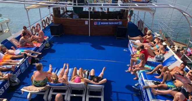 Spend a full day sailing along the stunning Marmaris coastline with the Marmaris Big Boss Yagna Boat Trip. Relax on comfortable sunbeds, take refreshing dips in the crystal-clear waters, and explore hidden beaches, bays, and islands untouched by mass tourism. This all-inclusive boat tour includes hotel pick-up and drop-off, a delicious BBQ lunch on board, unlimited soft drinks, and guidance from our professional crew to ensure a safe and memorable day for everyone.